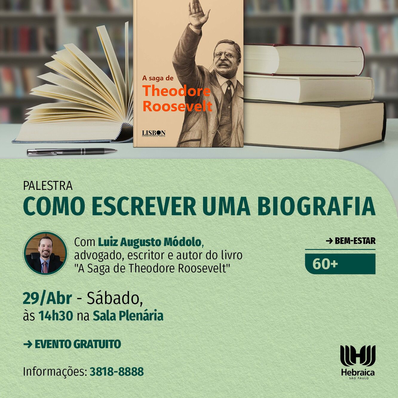 No próximo sábado, 29 de abril, às 14h30 na plenária do Clube Hebraica, Luís Augusto Módolo dará uma palestra sobre como escrever biografias.